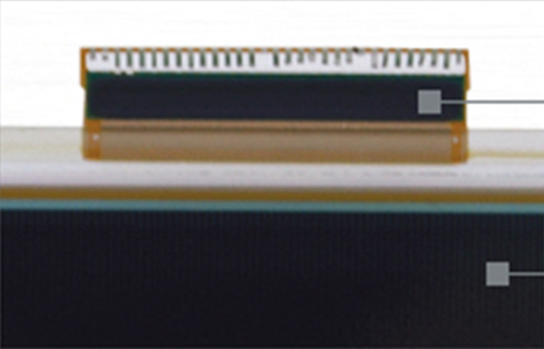 温度を加えることにより、接着と同時に電極間に挟まれた導電粒子を介して縦方向には電気的接続、横方向には絶縁の機能を有します。